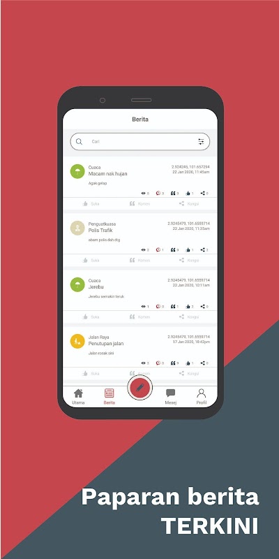 "RoJerbro is een community-gebaseerde applicatie waarmee communityleden of mensen in de buurt met elkaar kunnen communiceren via nieuwsmeldingen of herinneringen. Iedereen kan nieuws of herinneringen verzenden om anderen te informeren over incidenten of incidenten die zich rondom hen voordoen. andere gebruikers kunnen het bijgewerkte nieuws, commentaar of commentaar bekijken en de verstrekte informatie ondersteunen om de geldigheid van de verstrekte informatie te bevestigen.