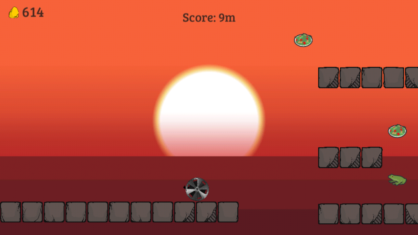 Use simple one tap gameplay to travel throughout time as far as you can without falling off. Unlock new levels by rolling required amount of distance and unlock new characters by spending golden nuggets you have collected along the way.