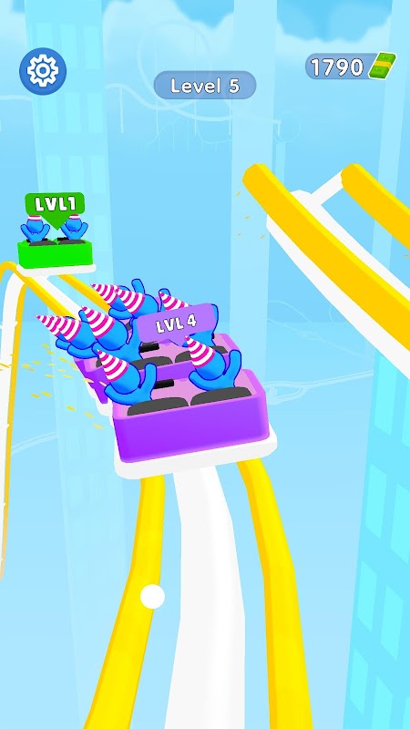 Naarmate je verder komt in het spel, ontgrendel je nieuwe niveaus, uitdagingen en aanpassingsmogelijkheden. Je kunt ook je achtbaan naar een hoger niveau tillen, waardoor je toegang krijgt tot nog krachtigere tools en functies.