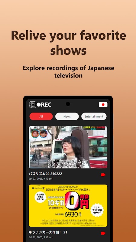 RoloREC is een app waarmee je geheel gratis kunt genieten van opgenomen Japanse programma's! Met een grote verscheidenheid aan programma's biedt deze app je een ongeëvenaarde kijkervaring, waardoor je overal ter wereld toegang hebt tot Japanse programma's, nieuws en entertainment.
