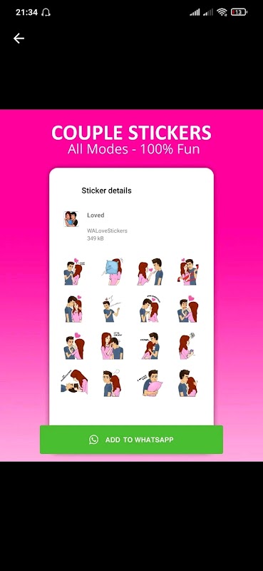 + Install this (Romantic stickers : WASticker for Lovers) app.