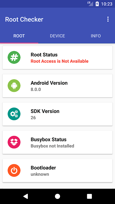 This application provide technical detailed related to root status (superuser access). Root checker app also provide device information like brand, model, imei, build, os version etc.