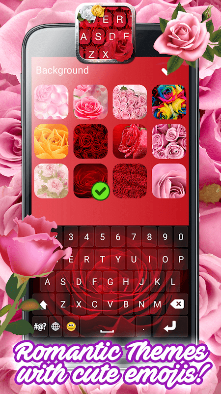 The best thing you can do for your mobile phone is to decorate it with incredible new 🌹 Rose Keyboard with Emojis & Pink Themes for Girls 🌹! Type like a pro with your brand new "rose sms themes" beautified with romantic roses. Every romantic girl will absolutely adore beautiful "red rose love keyboard" that make every phone look romantic and irresistible! Don't wait a second more and download these beautiful rose gold keyboard themes and use them right now, for free!