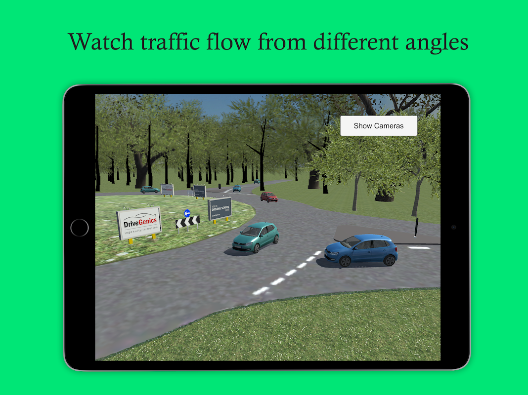 Een perfecte tool voor Approved Driving Instructors (ADI's) om rotondeprioriteit en verkeersstroom aan nieuwe studenten te leren.