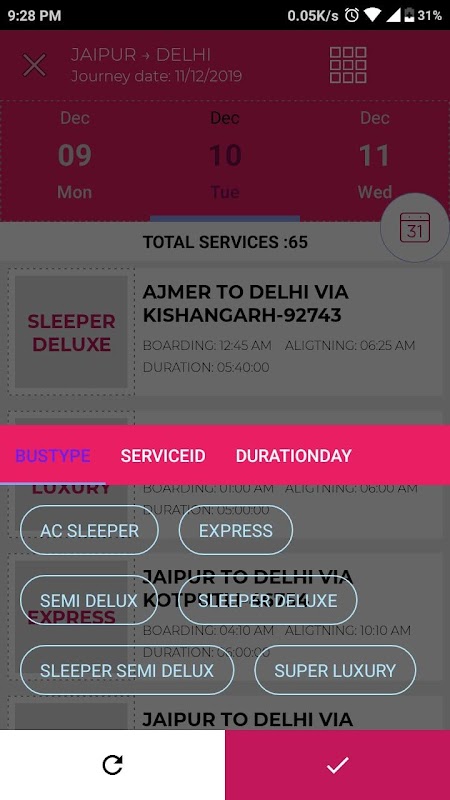 Met de app kunt u buskaartjes zoeken en reserveren voor routes die onder RSRTC vallen, in en rond Rajastan. Kies uit verschillende servicetypes (A / C en niet-A / C).