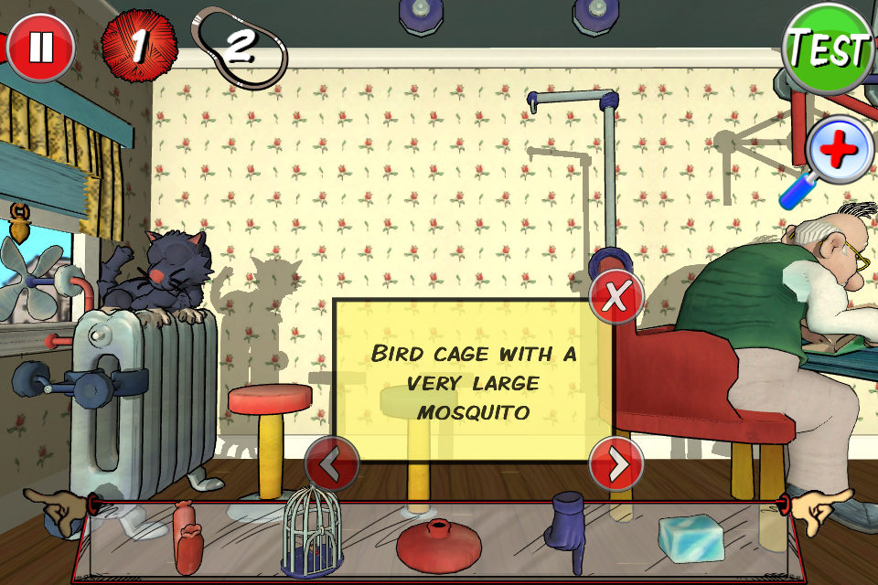 Het eerste en enige officiële Rube Goldberg-puzzelspel. Los alledaagse problemen op in Rube's kenmerkende uitgebreide grillige stijl door hilarische machines te maken. Is het inschenken van een glas sap gewoon te simpel en saai? Probeer een jack-in-the-box, vergrootglas, string en een cimbaal-zwaaiende vriend om je doel te bereiken. Hoe creatiever uw oplossing, hoe beter!