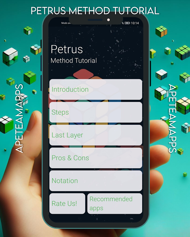 De Rubiks Cube Algorithms: Petrus tutorial app begeleidt u systematisch door de resolutie van de Rubik's Cube met behulp van de Petrus-methode, en verdeelt deze in twee hoofddelen: