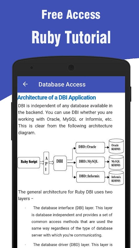 Ruby is a scripting language designed by Yukihiro Matsumoto, also known as Matz. It runs on a variety of platforms, such as Windows, Mac OS, and the various versions of UNIX. This app gives a complete understanding on Ruby.