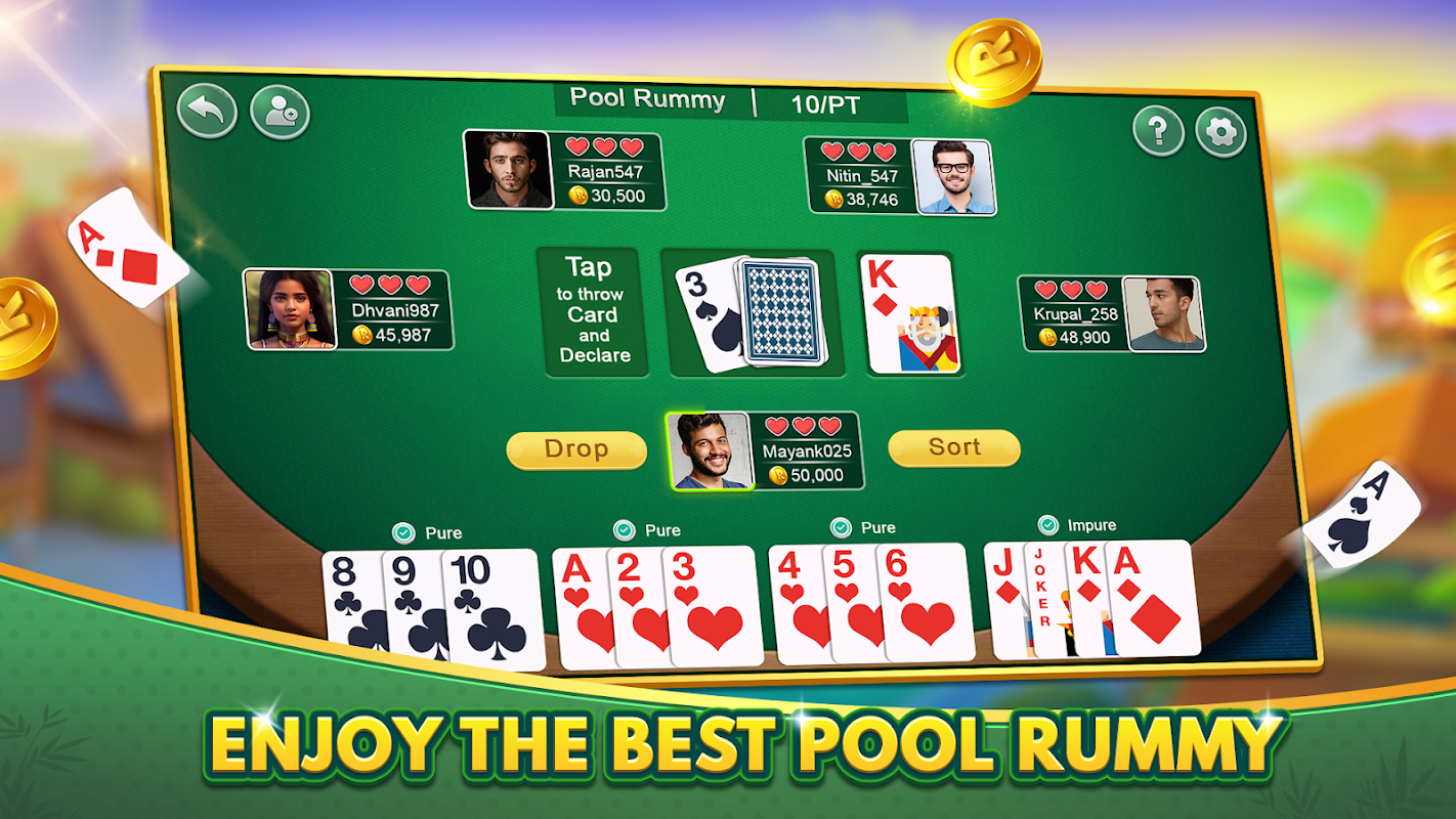 Speel de ultieme online multiplayer rummy-ervaring op je Android-telefoon of -tablet met soepele gameplay, snelle matchmaking en premium graphics.