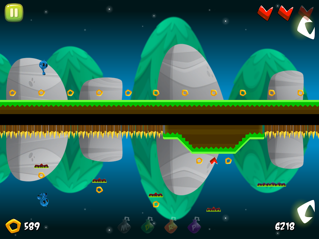 Run Run Robot: Mirror Mayhem is bedrieglijk eenvoudig te spelen! Tik op de rechterkant van het scherm om te springen en tik op de linkerkant van het scherm om te rollen. Time je sprongen zorgvuldig om door de gevaarlijk geplaatste platforms te navigeren en gebruik de rollerbal om door bashable kratten, rotsen en vijanden te slaan. Zorg ervoor dat je onderweg de harten en power-ups grijpt om de vaardigheden van de robots te vergroten!