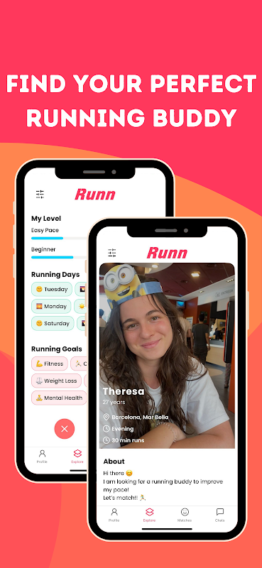 Runn is dé Tinder voor hardlopers – swipe door lokale atleten, match op basis van je voorkeuren en begin samen te hardlopen. Of je nu een marathon-PR wilt verbeteren of gewoon op zoek bent naar een leuk hardloopmaatje, Runn helpt je de perfecte match te vinden.