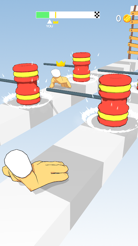 Run with the crazy fingers, push walls, take ropes and avoid obstacles to win the race!