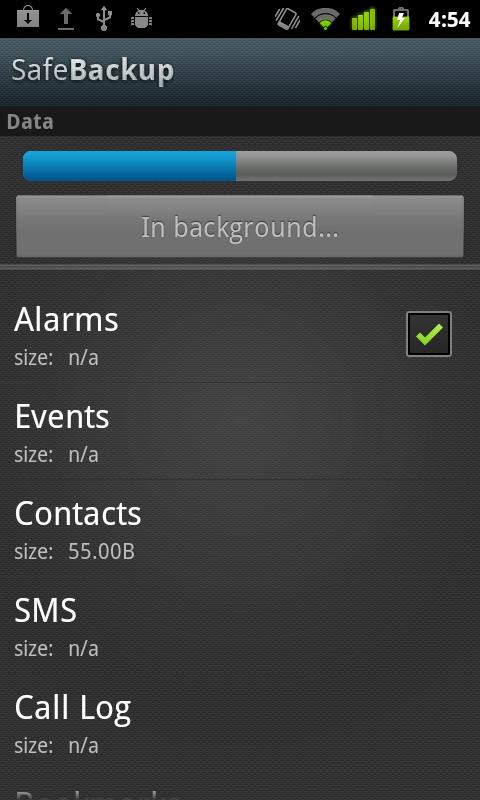 Safe Backup is a friendly application that can quickly and easily back up most of the data you keep on your Android device: