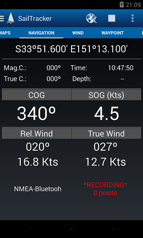 Sailtracker is an application that collects navigation NMEA data in real time from your boat through 3G/WiFi or Bluetooth.