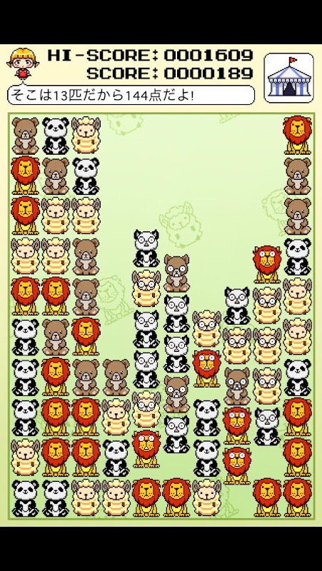Deze "SameGame" is een eenvoudige game.Your ultieme doel is om alle dieren te vangen.