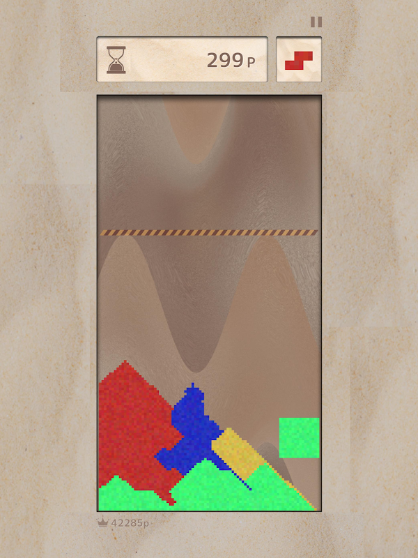 Het spel is afgelopen als het zand zich ophoopt tot aan de grenslijn bovenaan het scherm en er 3 seconden zijn verstreken.