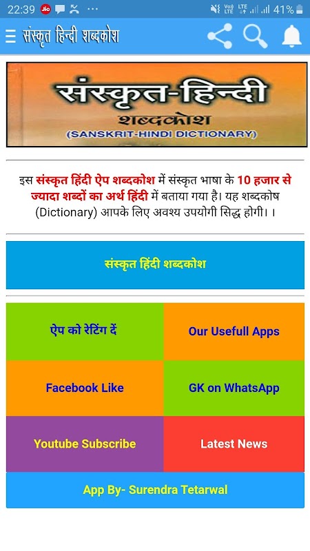 In deze app is de betekenis van meer dan 10 duizend woorden Sanskriet in het Hindi verteld. Dit woordenboek zal zeker nuttig voor je zijn.