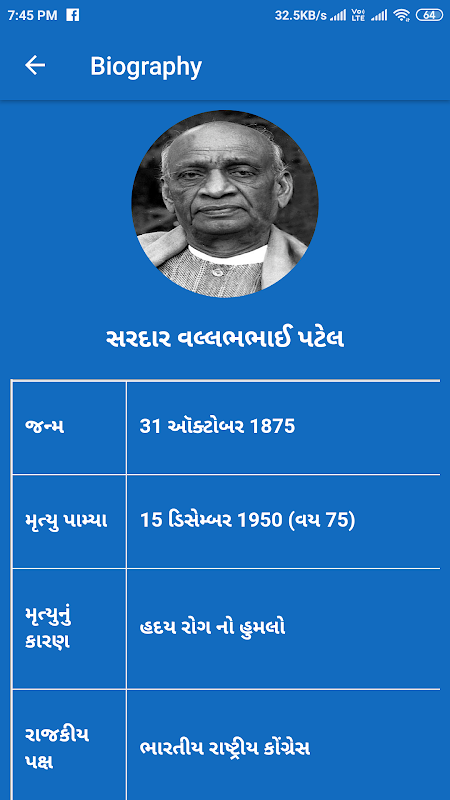 Deze applicatie bevat informatie van Sardar Vallabhbhai Patel.