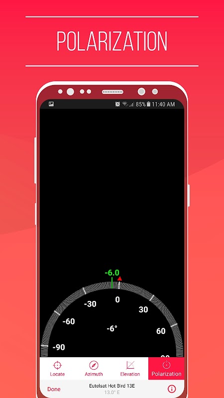 U kunt dan kiezen zoals satelliet in Dish uitlijnen Mode (alleen in PRO-versie): u zult worden voorzien van een vier stappen alignment tool die u zullen helpen uw TV-antenne gemakkelijk te installeren.