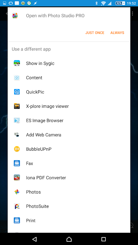 Dit is een heel eenvoudige app die een gedeeld bestand (bijvoorbeeld een afbeelding, een Word-document, een e-mailbijlage, enz.) Van een andere app neemt, het opslaat in de map "Download" in de opslag van je telefoon en vervolgens opent. In plaats daarvan is er ook de mogelijkheid om via Bluetooth te verzenden.