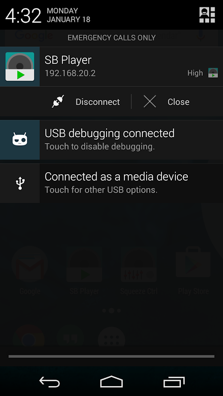 Een software Squeezebox-speler voor je Android toestel. Als je nog nooit hebt gehoord van Squeezebox doe een Google-zoekopdracht voor de aankoop. Deze app heeft slechts controles voor het aansluiten van servers, het geen weergave controles. Voor de bediening vindt u een gebruik van een Squeezebox remote app zoals Squeeze Ctrl nodig hebt, of gebruik maken van het web controles van uw server.