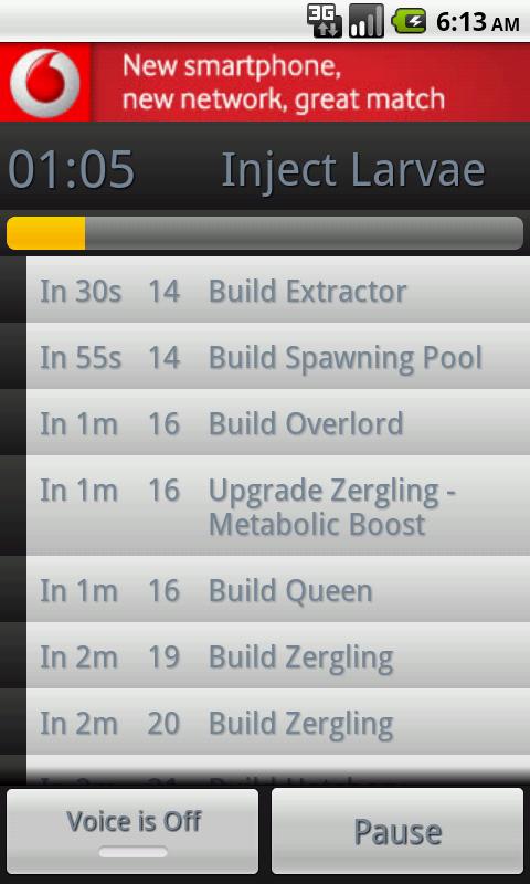 Perfect your Starcraft 2 build openers with SC2 Build Timer Lite to be like a pro gamer! This app contains a list of Starcraft 2 builds with visual or voice queues for every build order item to help you perfect your build order timings.