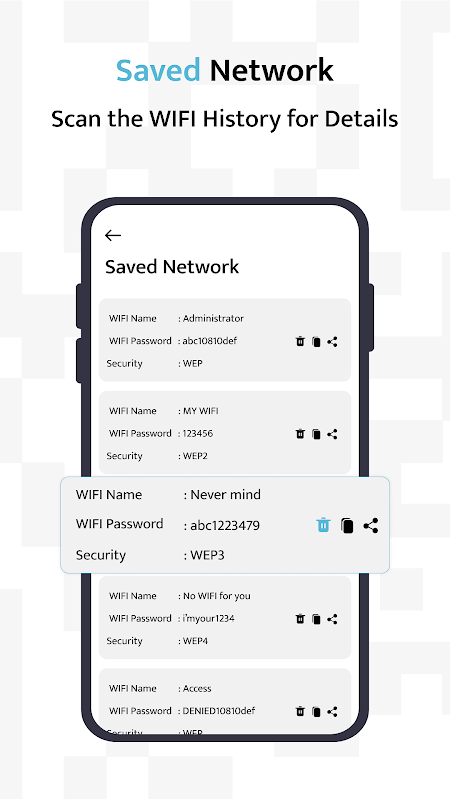 Heeft u moeite om verbinding te maken met een WiFi-netwerk zonder het wachtwoord in te voeren? Zeg vaarwel tegen het gedoe met onze app! Scan een QR-code en onthul direct het WiFi-wachtwoord. QR-codes zijn tegenwoordig overal, vooral in WiFi-netwerken. Het is belangrijk om te begrijpen hoe nuttig ze zijn om probleemloos toegang te krijgen. Of het nu op routers, laptops of telefoons is, QR-codes maken alles moeiteloos. Gebruik onze 'Scan WiFi-wachtwoord QR-code' om snel QR-codes te krijgen en uw online accounts veilig te houden.