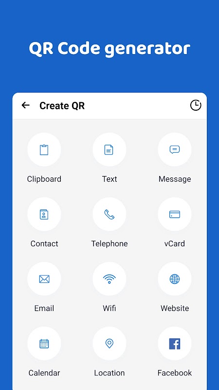 ✔️ Many types of QR Code: create social media links, contact, email address, website URL, calendar, location,...