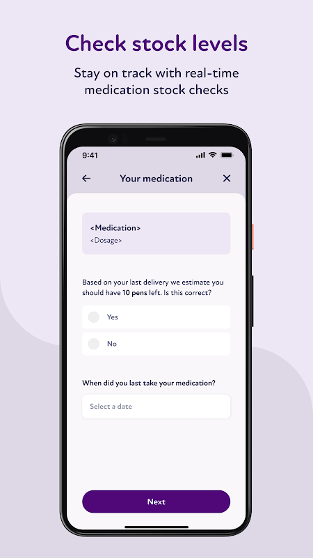 Trainingsbezoeken aan artsen: Bij de eerste medicijnafgifte kunnen in aanmerking komende patiënten trainingsbezoeken aan artsen plannen om te leren hoe ze de medicatie moeten toedienen. Kies in de app een datum die jou uitkomt.