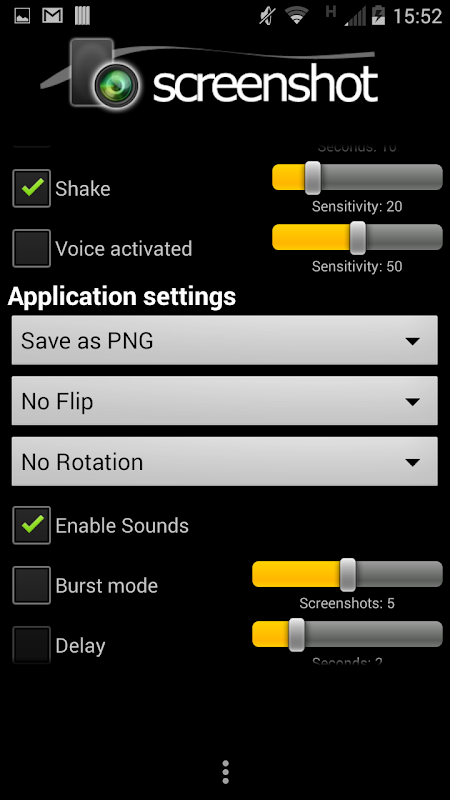 A tool for grabbing the screen of your Android device. It comes with powerful options such as countdown trigger, voice command, shake trigger, compression and basic editing functions such as flip or rotate.
