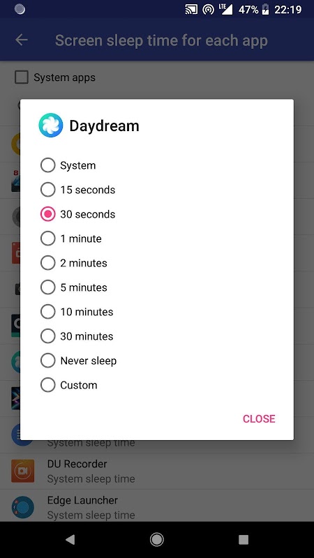 Schermvergrend slaaptijd voor elke app afzonderlijk