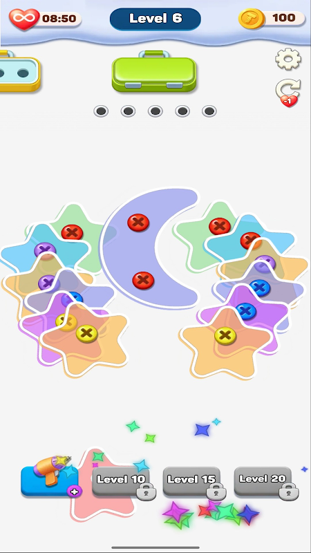 Maak je klaar voor een unieke draai aan klassieke match-spellen! Je missie is om kleurrijke schroeven van het paneel los te draaien door ze in de juiste volgorde te plaatsen. Plan je zetten zorgvuldig terwijl je langs ingewikkelde glazen obstakels navigeert – één verkeerde beweging kan het hele bord blokkeren en je strategisch denkvermogen op de proef stellen!