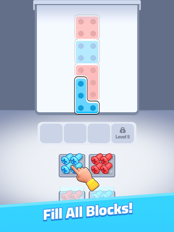 Welkom bij Screw Rush, een dynamisch puzzelspel waarin je sorteervaardigheden op de proef worden gesteld! Plaats de schroeven op de perfecte plek in Tetris-achtige blokken en vul de vormen zo efficiënt mogelijk. Met elk niveau wordt de uitdaging groter naarmate complexere blokken en sneller sorteren vereist zijn. Screw Rush is gemakkelijk op te pikken en eindeloos bevredigend en combineert snelle gameplay met een unieke mechanische twist.