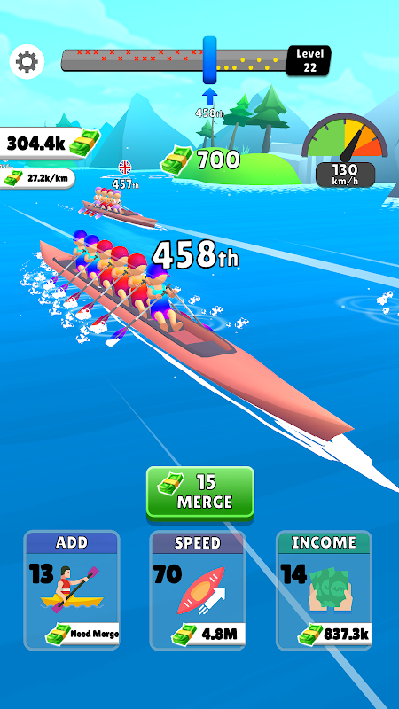 - Snelle gameplay: zweef in een opwindend tempo door het water, gevoed door het aantal mensen dat je aan je bemanning toevoegt.
