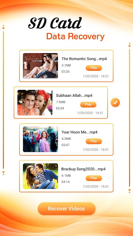 Deleted photos, videos and audios can be recovered from files section and Recover Deleted Photos From SD Card will display proper data. Users have option to restore any data like audios, videos and photos and which data is not important can be leave. Mp4 videos can be recovered from recover contact folder in a click with processing of few seconds. Recover deleted files is now very easy with this SD Card Data Recovery App.