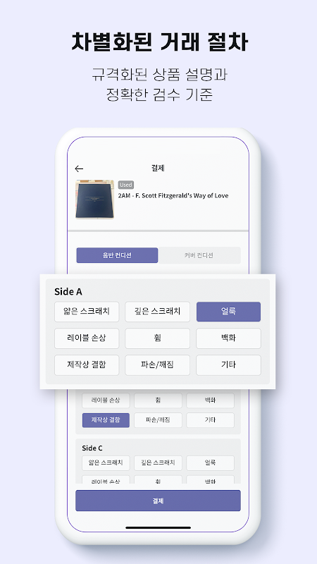 - 거래 전 앨범 상세페이지에서 음악을 미리 들어보세요