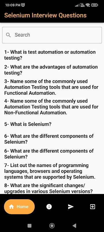 Sollicitatievragen over Selenium: voor degenen die specifiek geïnteresseerd zijn in Selenium, bevat onze app een speciale sectie met meer dan 100 vragen gericht op Selenium-concepten. Verdiep uw kennis en vergroot uw vertrouwen in interviewscenario's van Selenium.