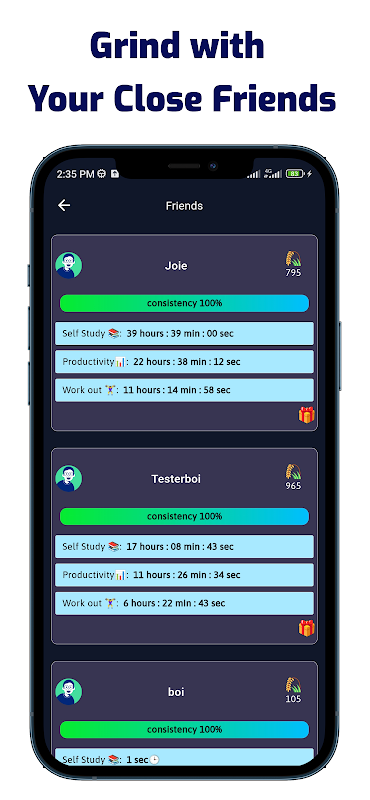 Hier kun je studievrienden maken, zodat gebruikers cadeaus kunnen sturen en hun studiepartner kunnen ondersteunen en motiveren. Je kunt ook de voortgang van je studievrienden volgen. Ondersteun je studiepartner en groei samen.