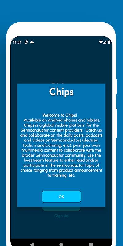 Chips is beschikbaar op Android-telefoons en -tablets en is een wereldwijd mobiel platform voor de Semiconductor-gemeenschap.