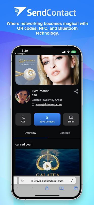 De SendContact App maakt gebruik van de modernste Bluetooth- en NFC-technologie, zodat u moeiteloos verbinding kunt maken met klanten en potentiële partners. Met de Bluetooth-detectiefunctie voor Contacten verzenden activeert u eenvoudigweg uw telefoon om personen in de buurt te detecteren, of met een snelle tik van uw telefoon tegen de NFC-kaart of telefoon van iemand anders kunt u in een oogwenk contactgegevens, afbeeldingen en video's uitwisselen. Het is een magische manier om verbinding te maken.