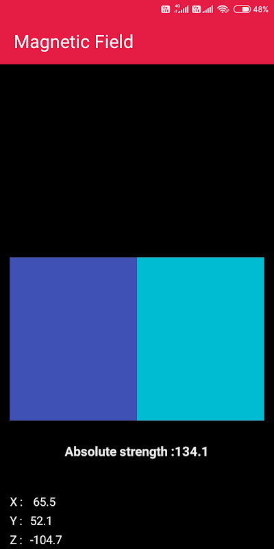 4. Magnetische veldsensor OF MAGNEETSENSOR: - Deze sensor geeft de magnetische fluxdichtheid aan op de X Y- en Z-as met realtime grafische afbeeldingen met absolute sterkte.