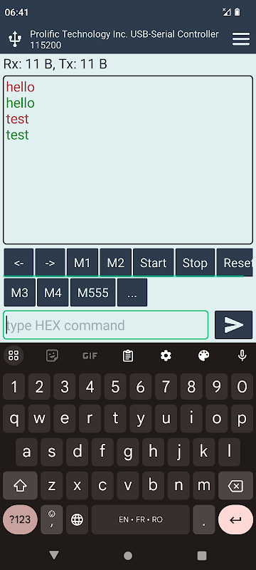 • dataformaat (tekst / hexadecimale data) kan afzonderlijk worden geconfigureerd voor het terminalscherm en voor de commando-invoer.