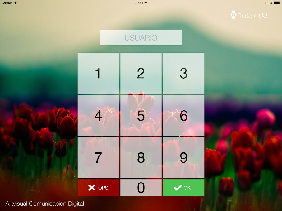 Sesame verandert elke tablet in een eenvoudig toegangspunt voor werknemers waar ze alle in- en uitgangen die binnen het bedrijf plaatsvinden, kunnen opnemen. Dit record geeft ons relevante informatie die we tegelijkertijd in meer detail zullen gebruiken in de mobiele applicatie voor Smartphone. Om elke registratie uit te voeren, moet de werknemer een toegangscode invoeren die zal zijn verstrekt door het bedrijf en die hem uniek zal identificeren.