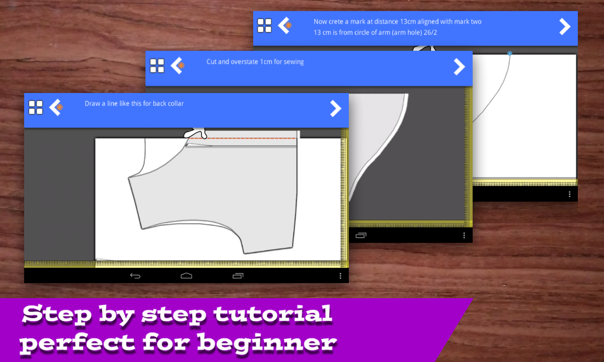 Sewing guide is a tutorial application to create basic patterns of clothing, equipped with an attractive animation with captions in each step so easy to understand for beginners.