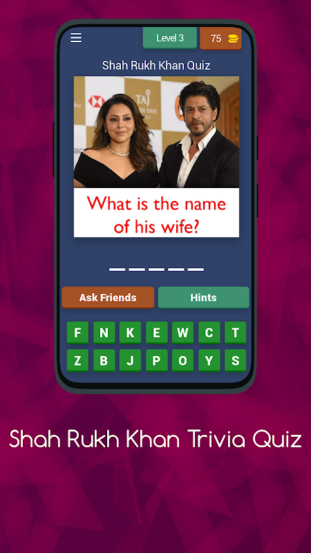 🌟Bereid je voor op het ultieme quizavontuur, met in de hoofdrol de enige echte Koning Khan! Shah Rukh Khan Trivia Quiz is een spannend en gratis trivia-spel over de geliefde superster van India. 🎥 Met een breed scala aan spelmodi, uitdagingen en gebeurtenisgestuurde inhoud kun je je kennis van de onvergetelijke rollen van SRK, zijn filmfeiten, zijn dialogen en meer testen! 🎬