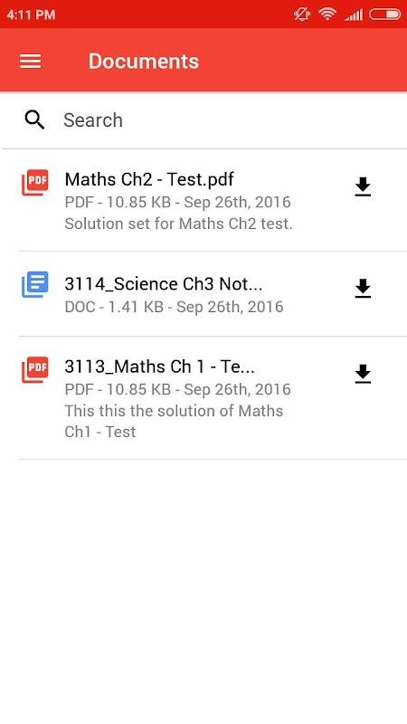 * Download test related answer papers, notes or any shared document.