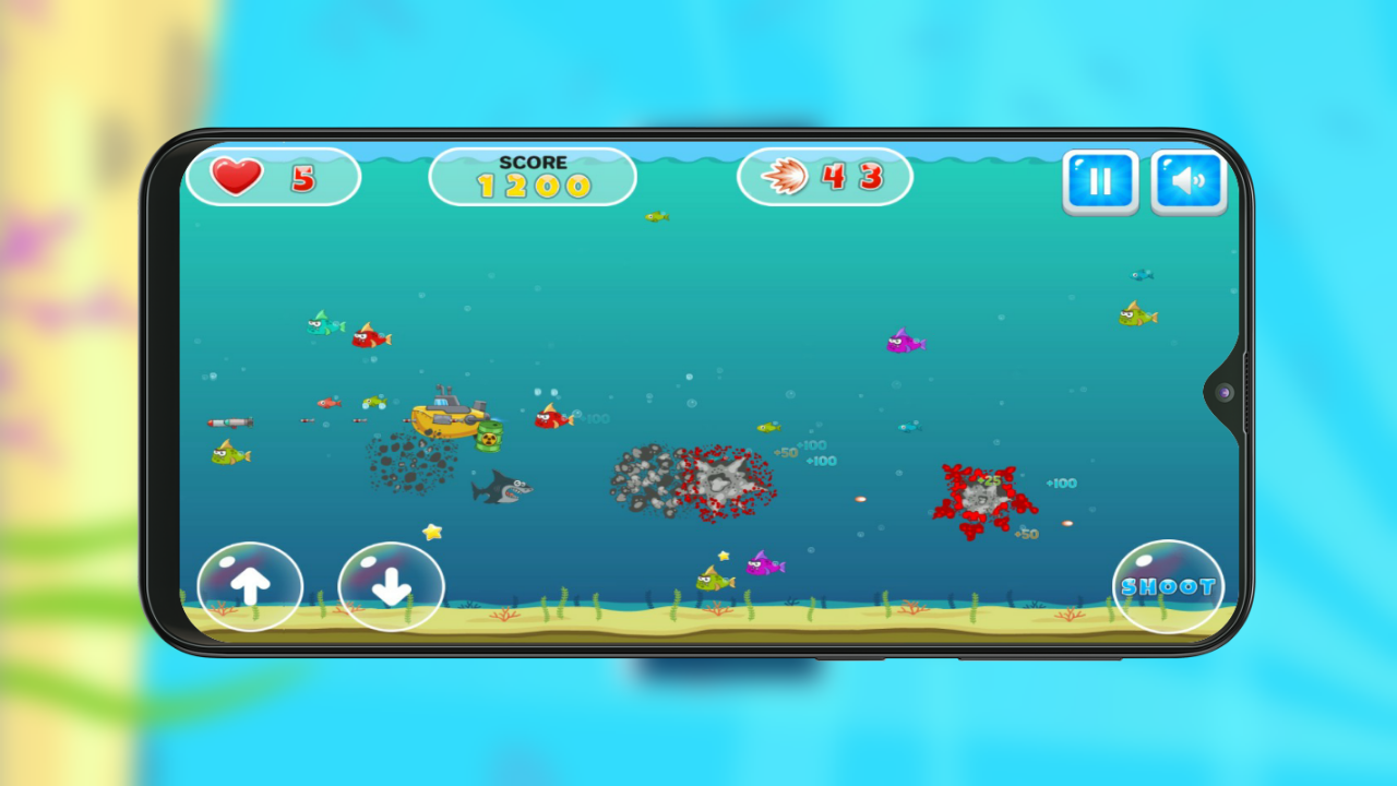 The gameplay is straightforward. You must tap the up or down button to move the shark on the screen. Do not let it collide with a bomb or you will lose a life. But if you bang into a submarine or a ship, it is game over instantly for you! Your aim is to make it across the ocean floor safely all the while collecting other fishes and stars. Move up and down in quick succession and collect more stars. The more stars you collect in this endless game, the more points you score. Make our way through the murky waters and become a pro at Shark Dash.