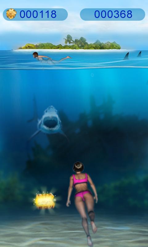Swipe on the screen to control the diver, collect coins to score the game while avoid from attack by sharks. You may collect super shield to protect you for certain time period.
