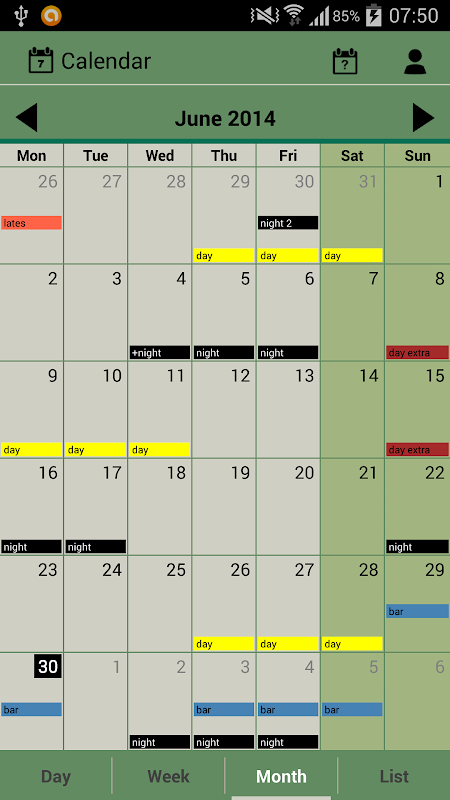 - Up to 3 shifts can be displayed in the calendar at the same time