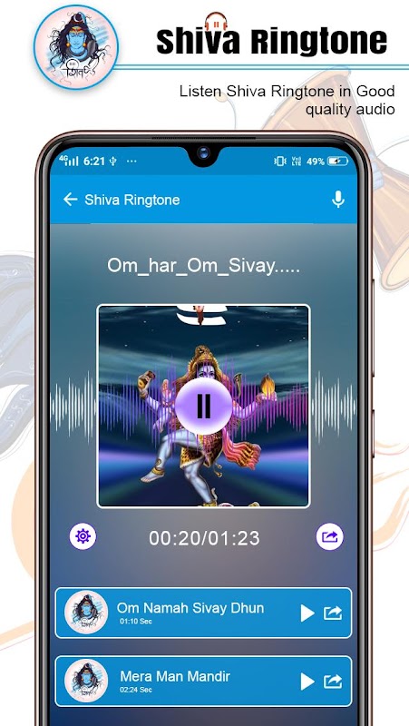 Using this Lord Shiv(Mahadev) Rigntones app you can set ringtones and wallpaper of Lord Shiv as your mobile ringtone..